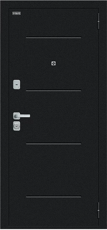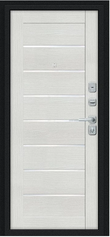 Надежная входная Дверь Браво Техно/BChrome Букле черное/Bianco Melinga премиум класса по цене 36 430 руб. Большая толщина стали защитит от проникновения в ваш дом, квартиру или коттедж. Используется очень качественная фурнитура: замки, цилиндры, ручки, защелки. Покрытие и отделка двери изготовлено под внимательным контролем производителя. Дверь имеет долгий срок службы и гарантию.
