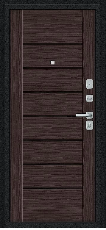 Надежная входная Дверь Браво Техно/BChrome Букле черное/Wenge Melinga премиум класса по цене 36 430 руб. Большая толщина стали защитит от проникновения в ваш дом, квартиру или коттедж. Используется очень качественная фурнитура: замки, цилиндры, ручки, защелки. Покрытие и отделка двери изготовлено под внимательным контролем производителя. Дверь имеет долгий срок службы и гарантию.